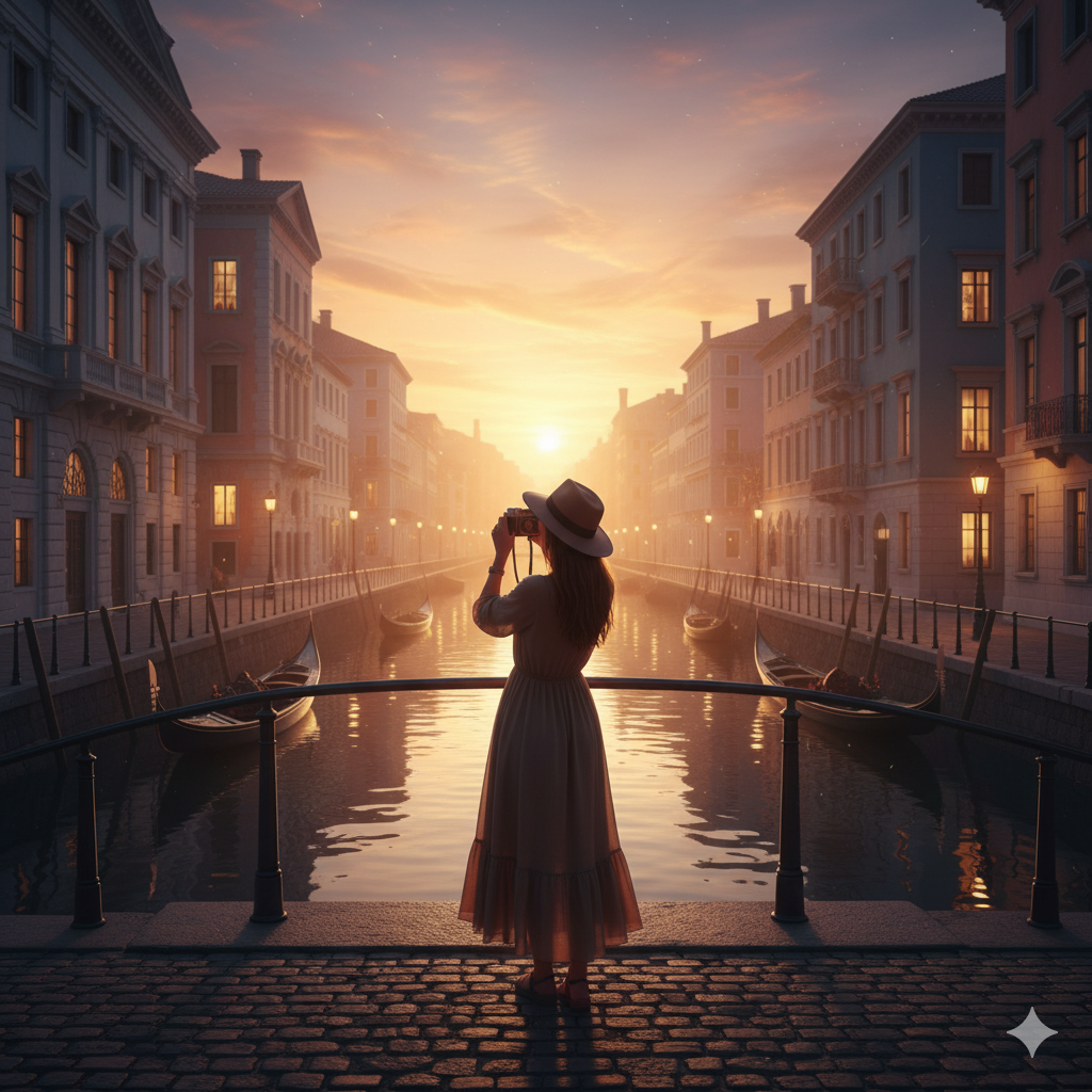 📍 추천 포인트: 운하 다리 / 골목 돌담길 / 유람선 지나갈 때