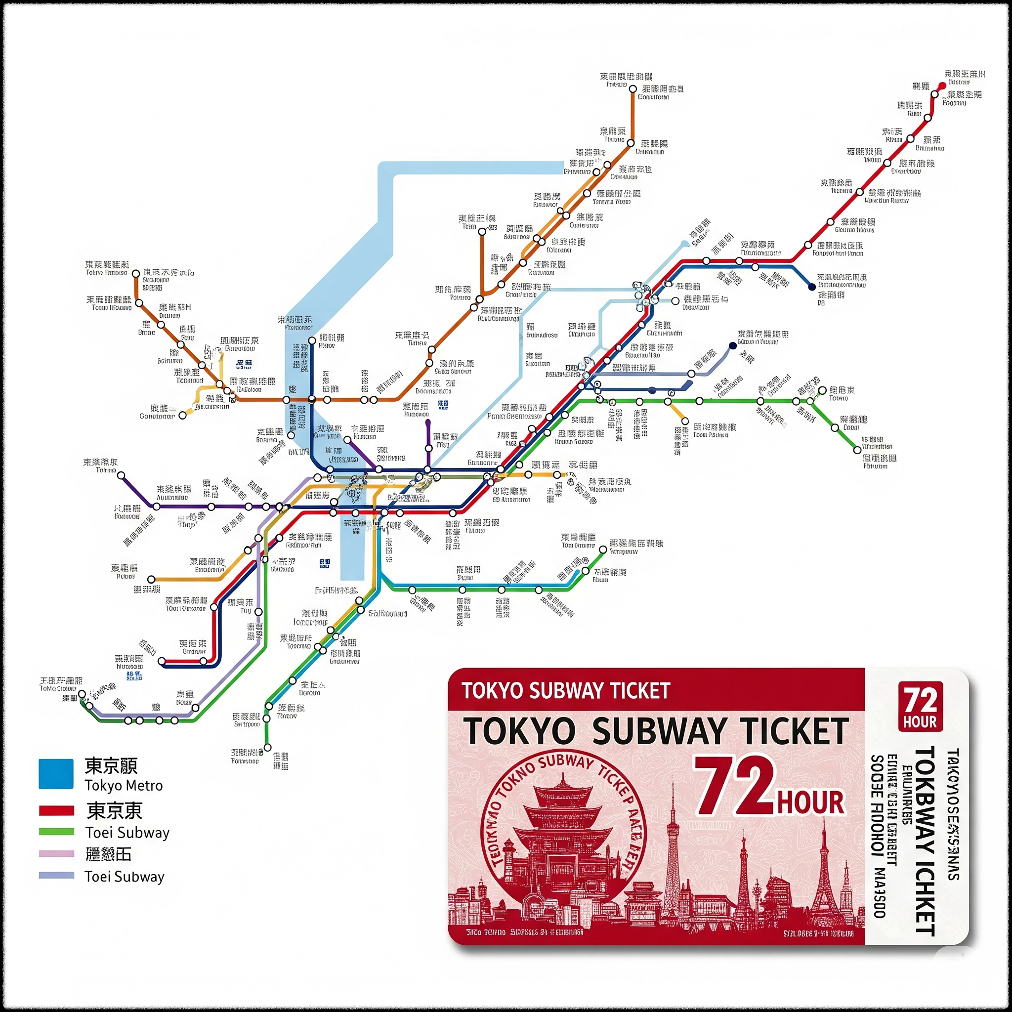 이 티켓은 도쿄메트로 + 도에이 지하철을 무제한으로 탈 수 있는 패스인데,